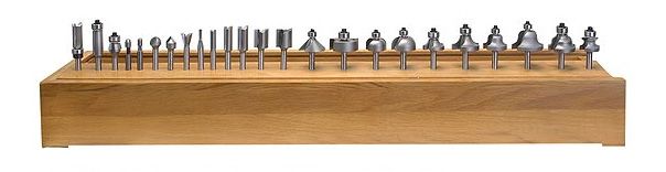 To make it simple for beginners we suggest a five-piece carbide tip starter set that includes a rabbeting bit with four bearings. A straight bit, a round over bit, a chamfer bit and a Roman ogee bit. All should have sturdy half inch shanks.